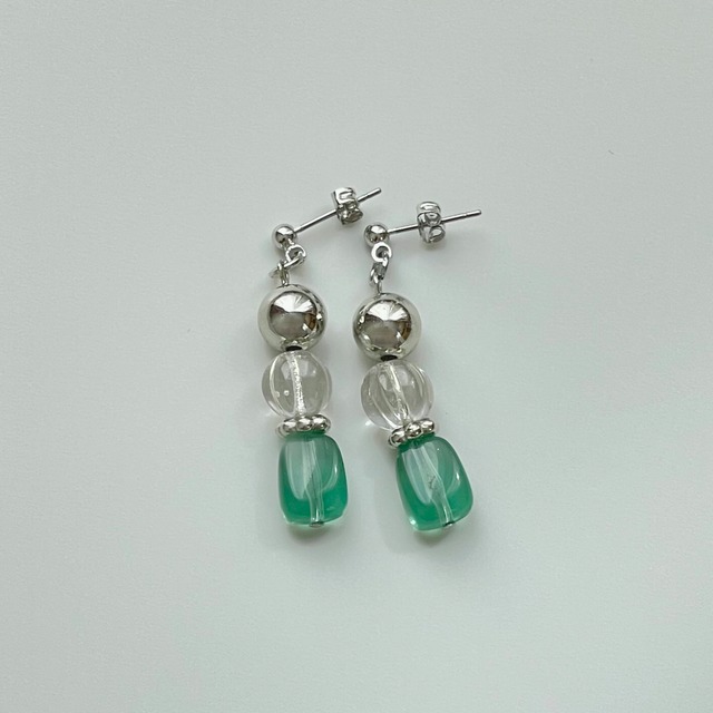 yurayura stone pierce / ゆらゆら ストーン ピアス チェコガラスやグリーン・メタルのビーズを合わせた揺れるタイプのピアスです。 小ぶりながらもデザイン性があり、シンプルなカジュアルコーデにも、 少し上品なコーデにプラスしても可愛くおすすめです♪ ※イヤリング変更可能◎ 無料でイヤリングに変更いたします。 素材は真鍮です。 購入時に、イヤリングへの変更の旨を記載の上、ご購入お願いいたします。 素材:真鍮 サイズ(長さ):約3.8cm