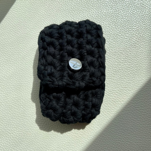crochet pouch black / かぎ針編みポーチ ブラック 極太ヤーンを使用したポーチです。 リップなどのちょっとした化粧品や小物を入れるのはもちろん カードケースとしてもご使用いただけます! 日本ではなかなか見かけない太めの糸を使用しているので 周りとも差のつくアイテムです。 自分にぴったりの使い方を見つけてみてください♪ 素材:ポリエステル サイズ:縦 約12.5cm 横 約8cm 厚さ 約3cm