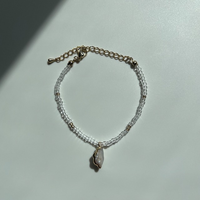shell charm bracelet / シェルチャームブレスレット 夏らしいシェルチャームとクリアビーズを合わせたブレスレット 全体的にゴールドとクリアでまとめ、上品ながらも 夏らしく涼しげなデザインに仕上げました。 ガーリーコーデや大人っぽい上品なコーデにぴったりです♪ 素材:真鍮 (金具) サイズ:約16~23cm