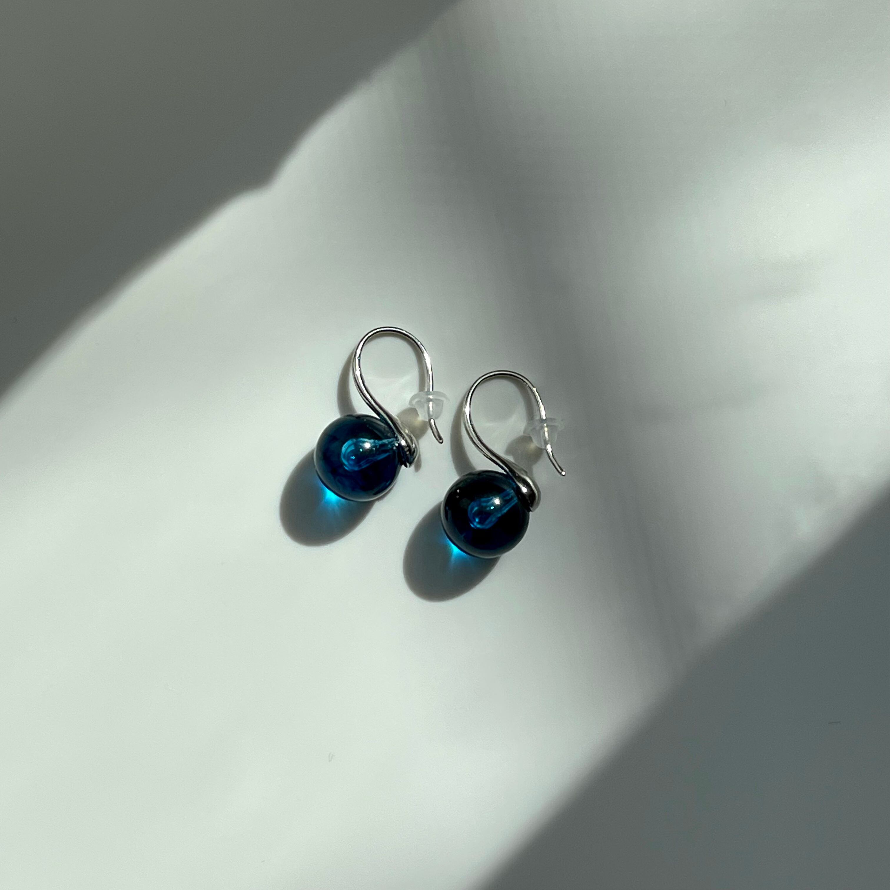 艶のあるドイツ製のブルーストーンを使ったピアスです。
