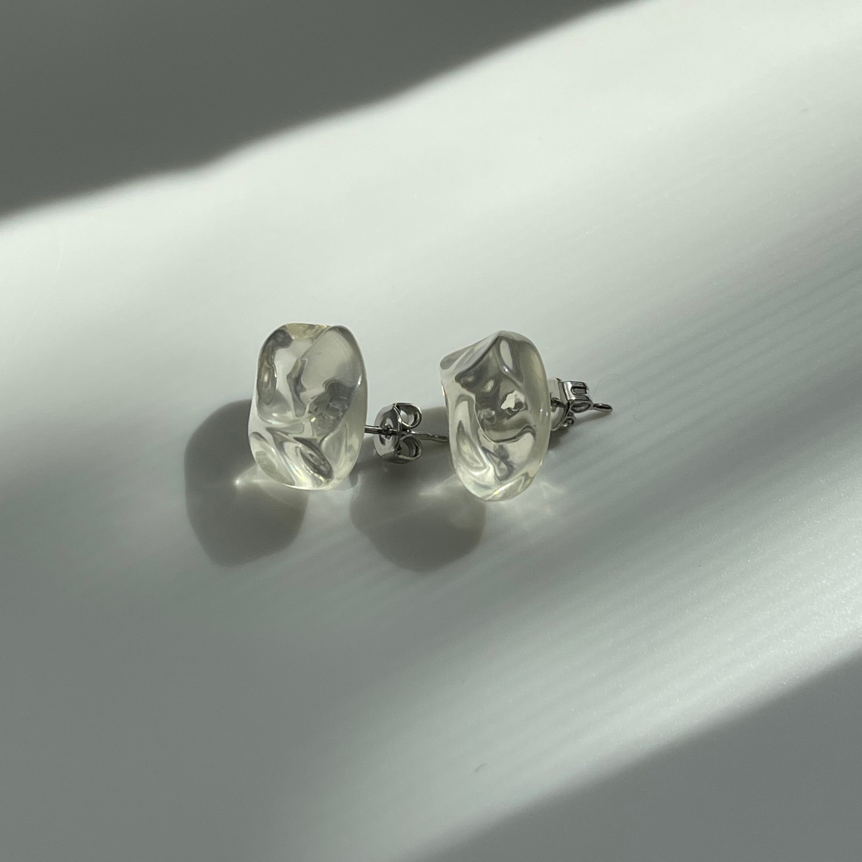 凸凹した形が可愛いクリアピアスです。