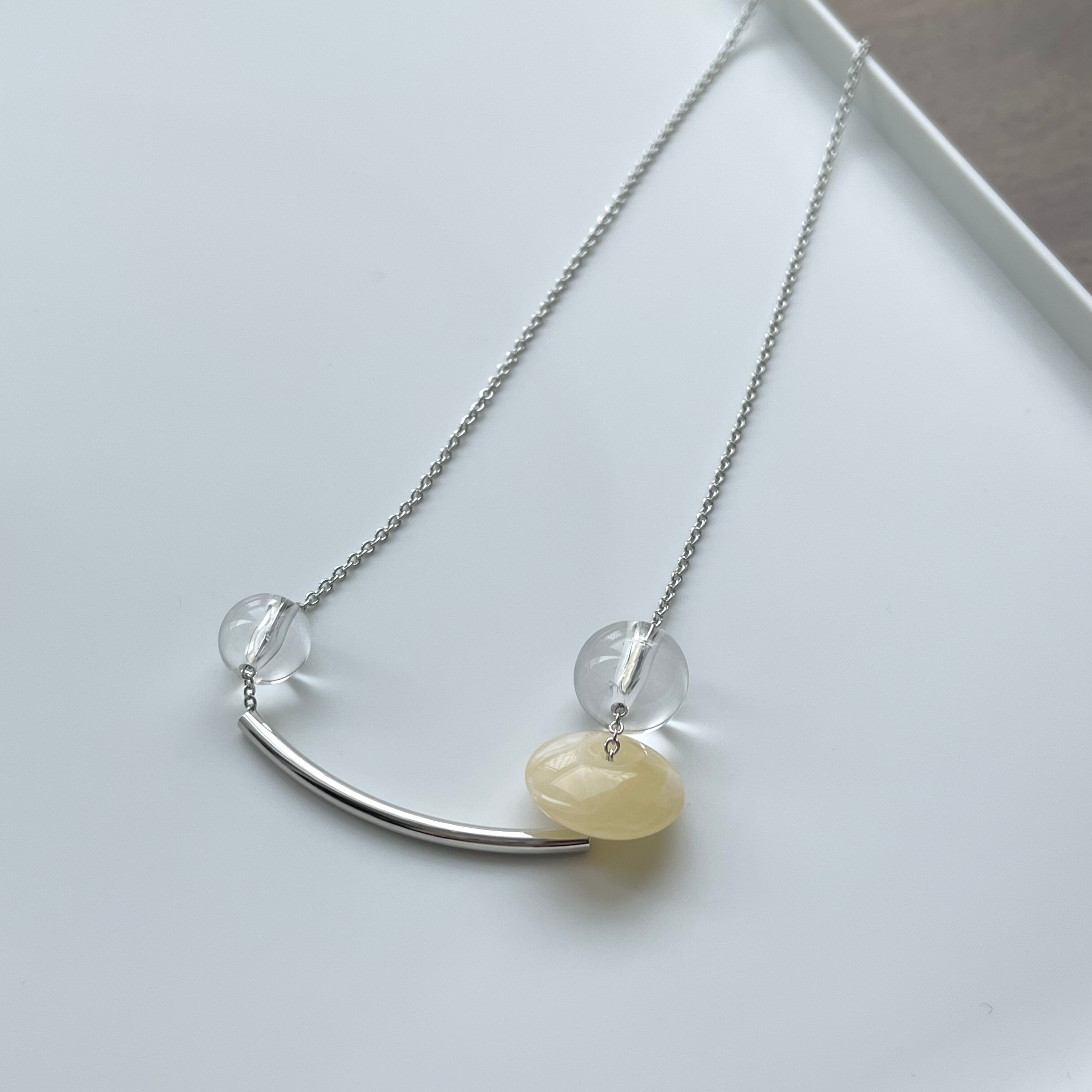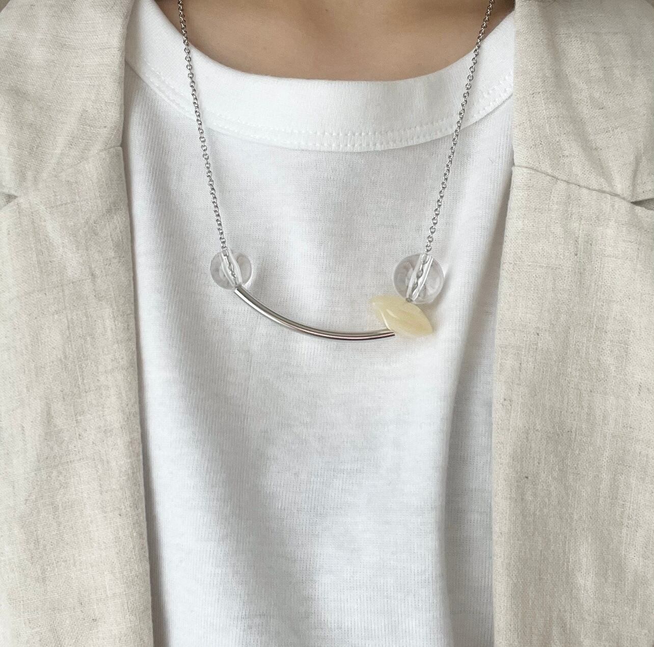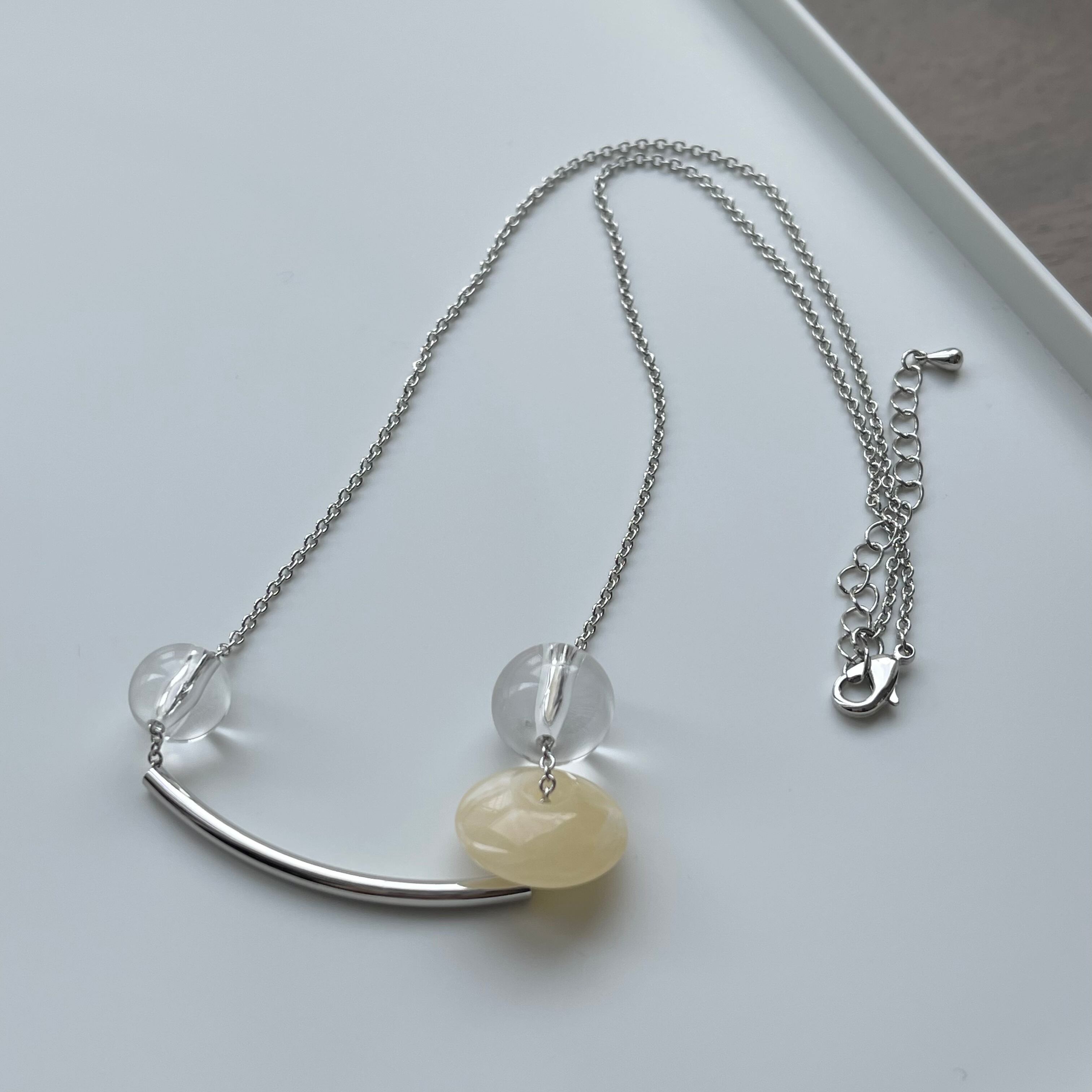 ベージュとクリアの形の異なるストーンを使用したネックレスです。