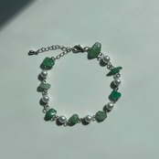 グリーンストーンとパールを組み合わせた上品なデザインのブレスレット