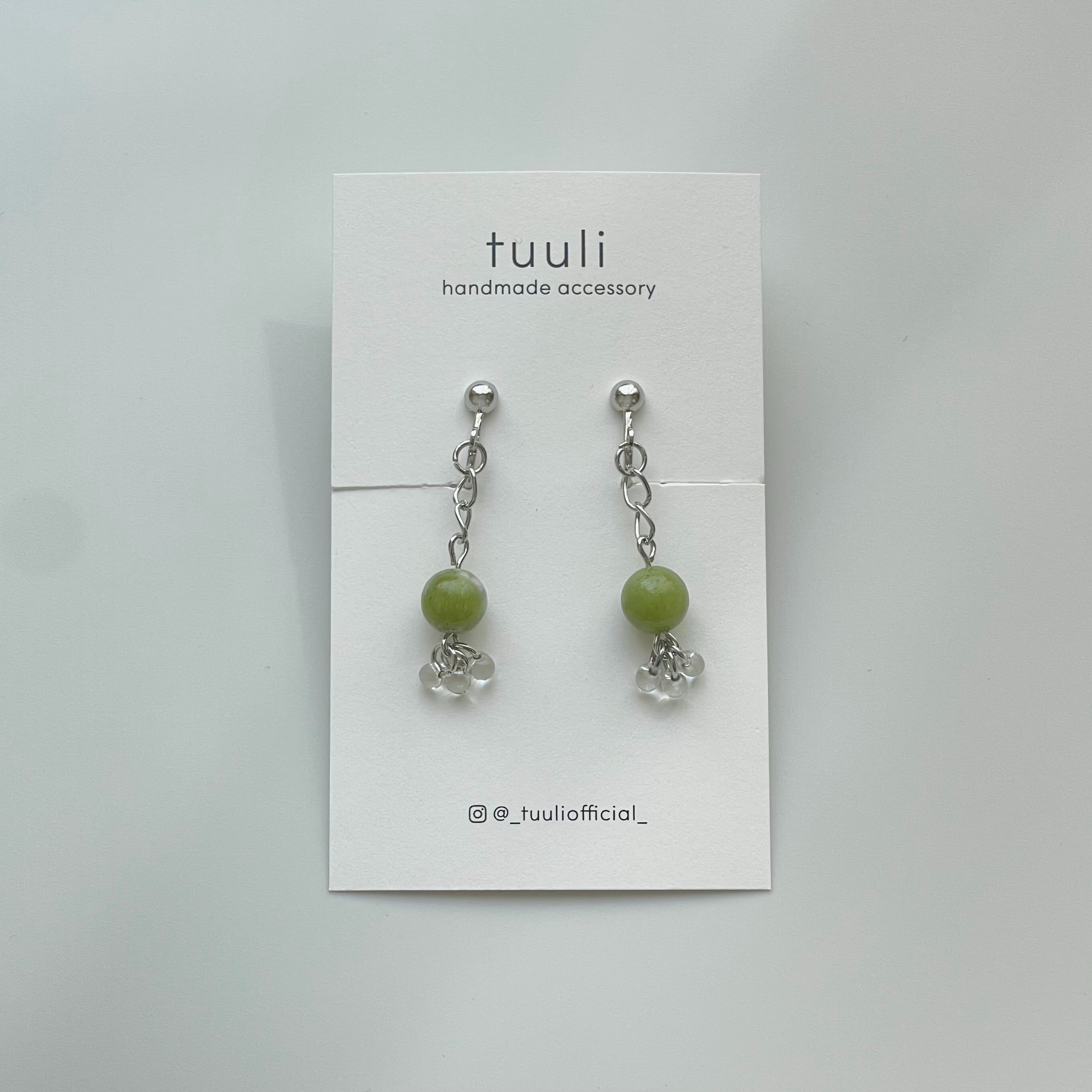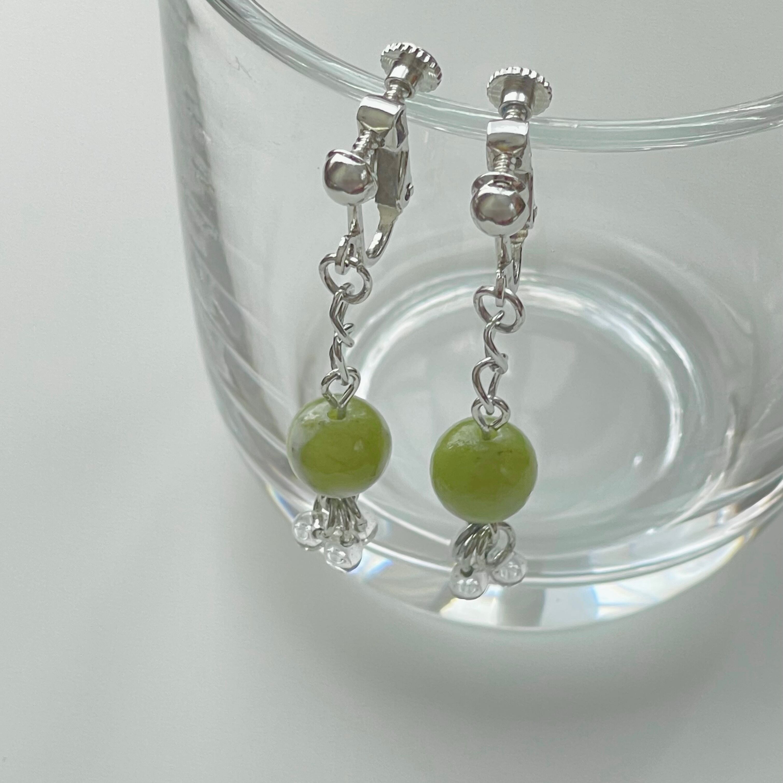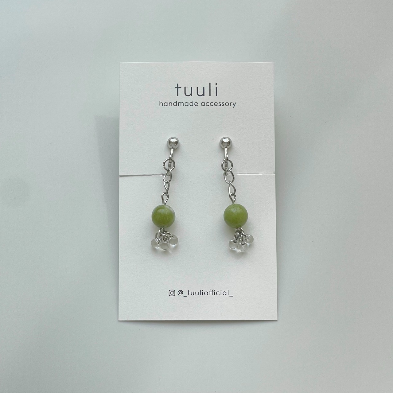 緑のストーンがアクセントになり、コーデのワンポイントに