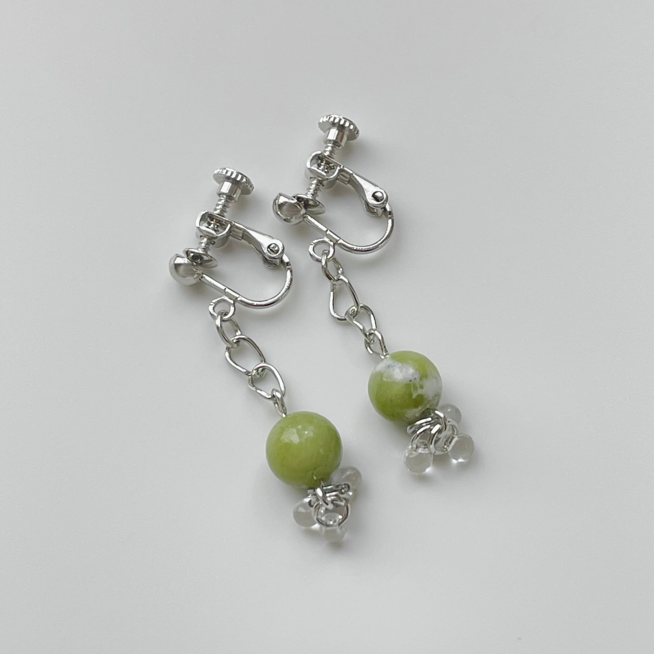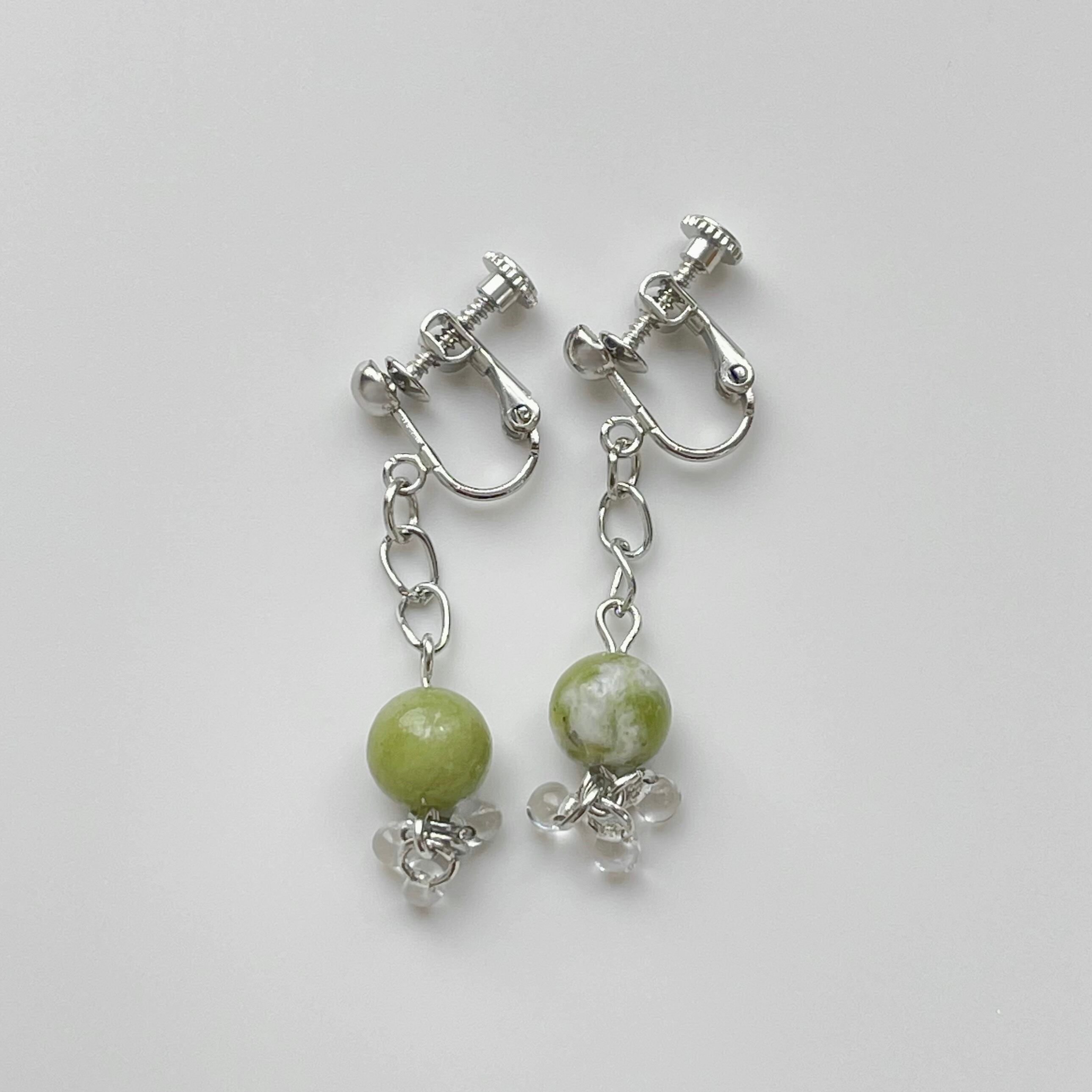 マーブル模様のストーンを中心に、つぶつぶビーズ・チェーンを