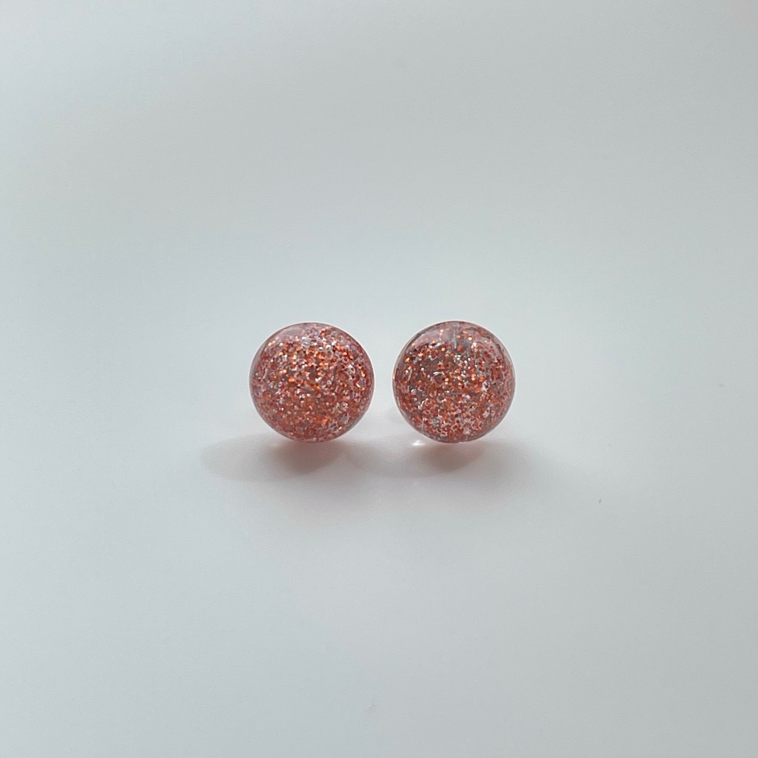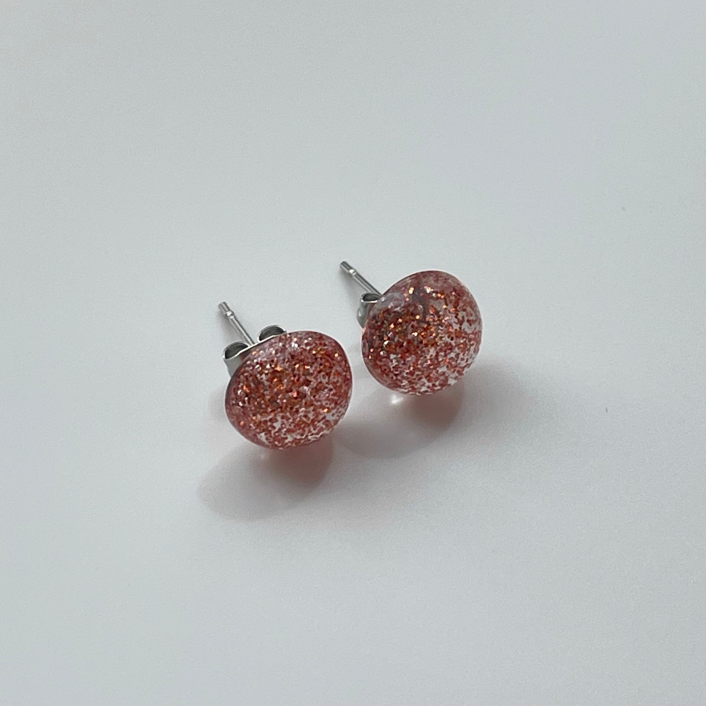 オレンジのラメが綺麗な半円のレジンピアスです。
