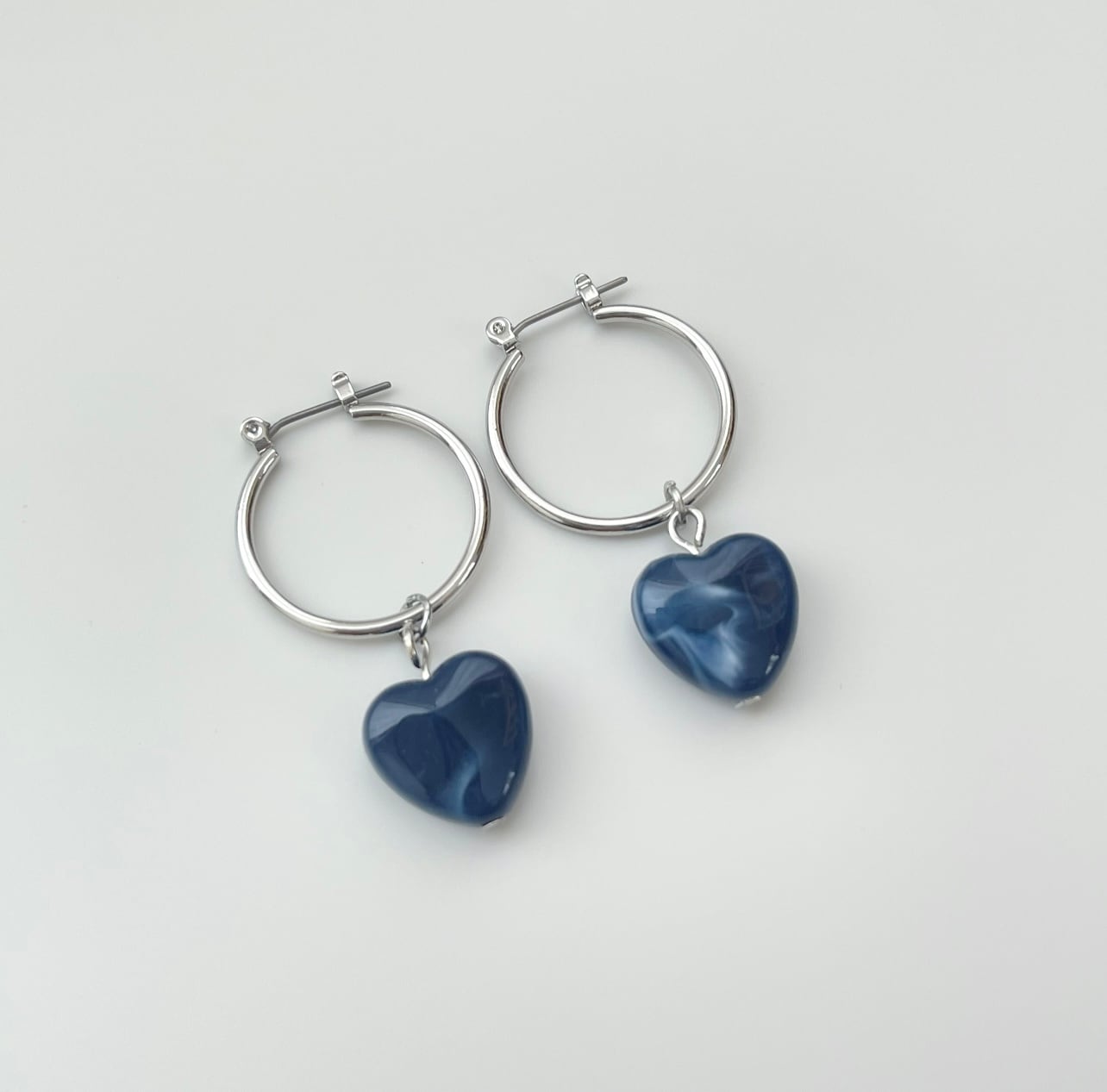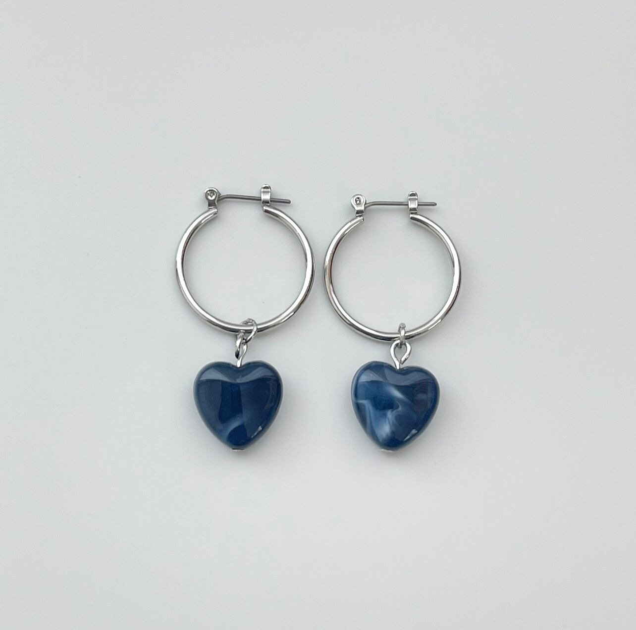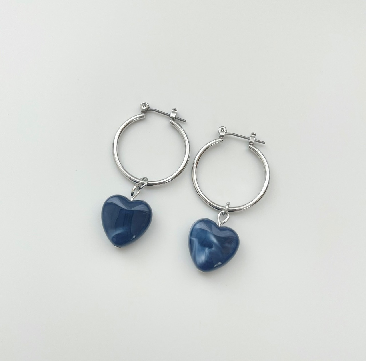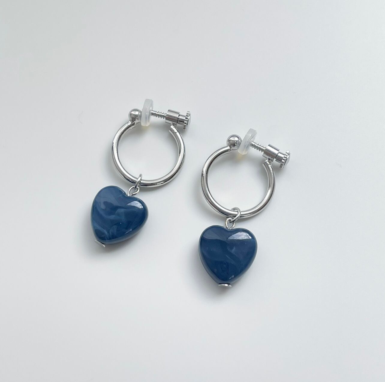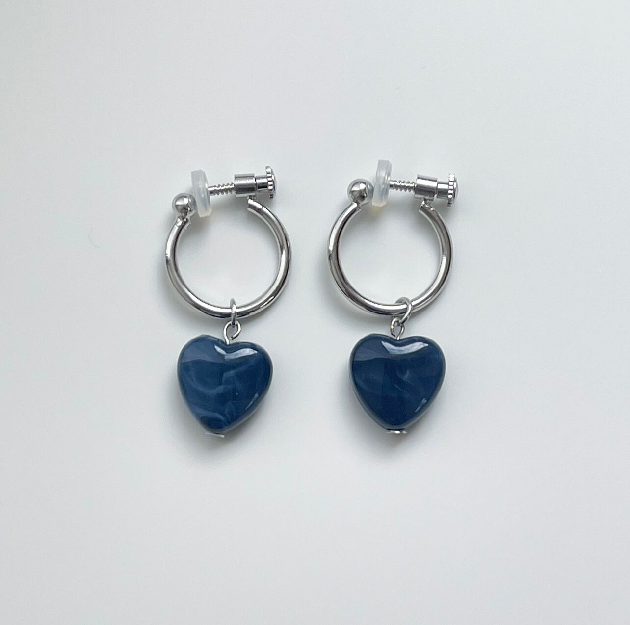 マーブル模様のハートチャームを使用したピアス&イヤリング