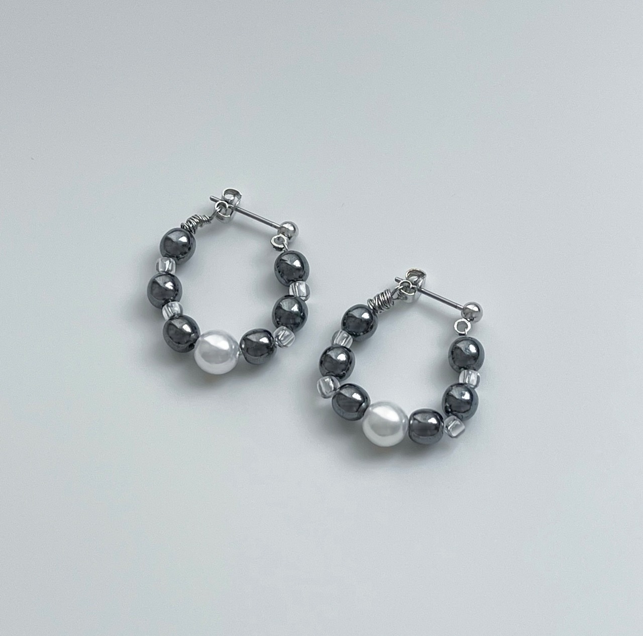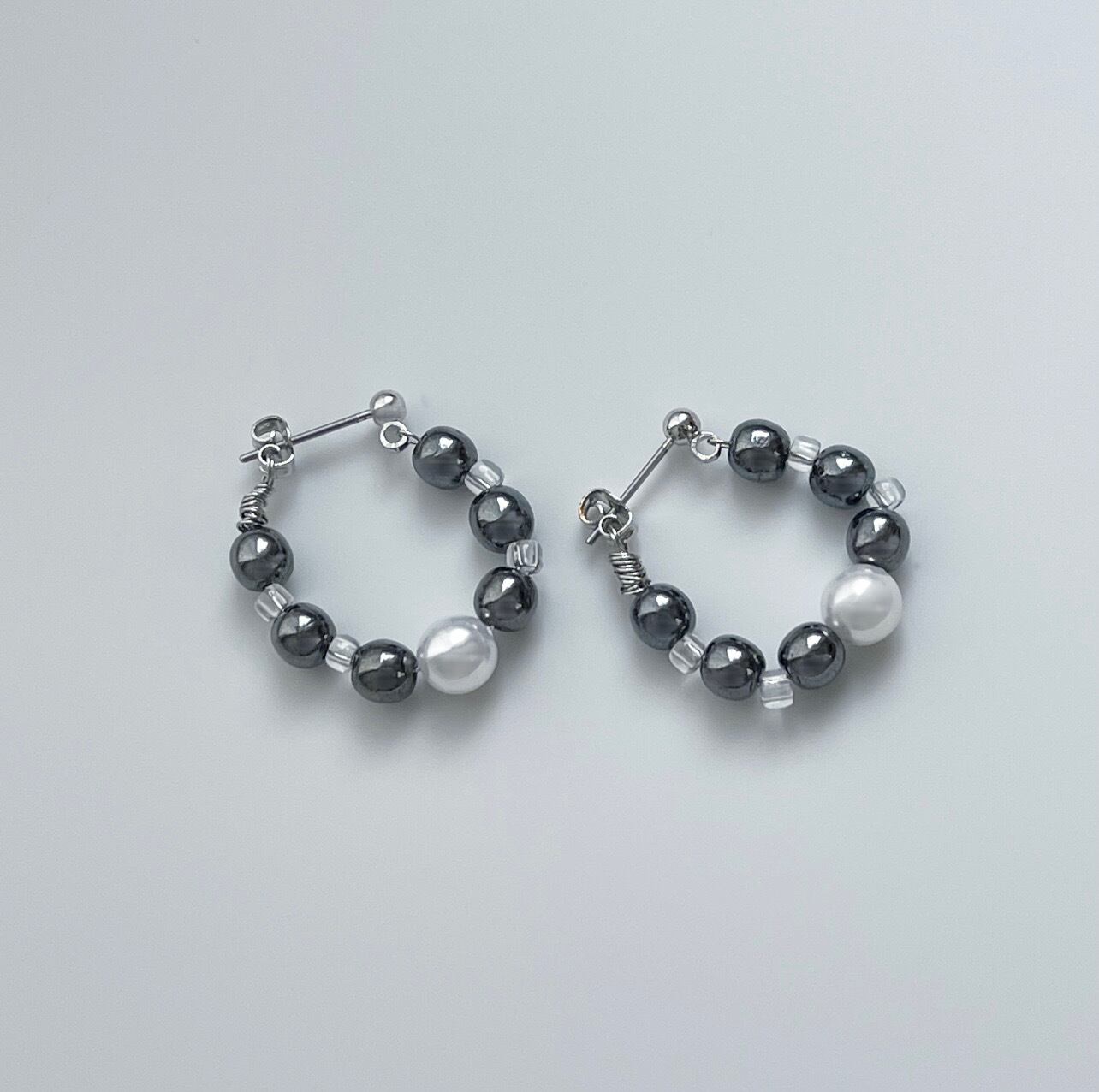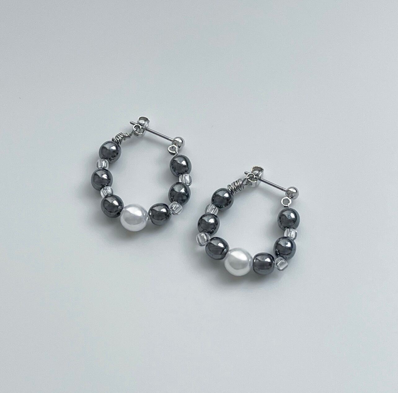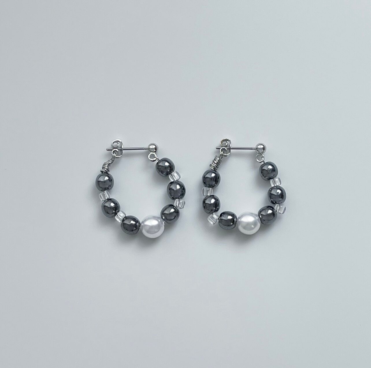 メタルやクリアのビーズを中心にアクセントでパールをプラスしたピアス