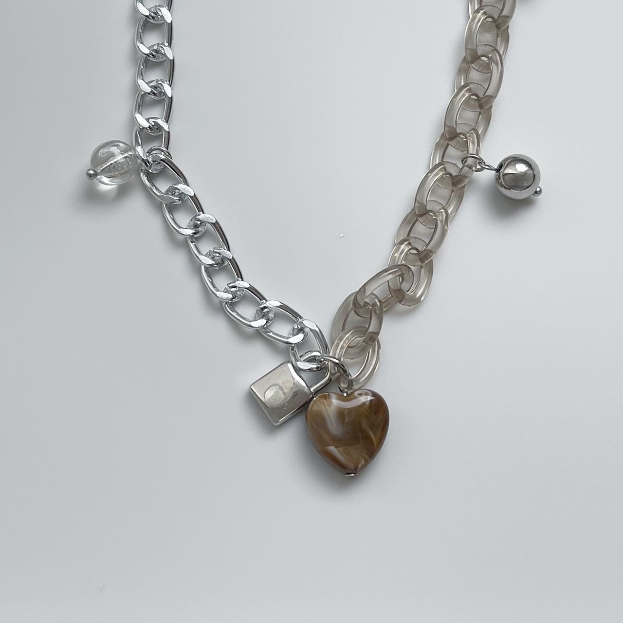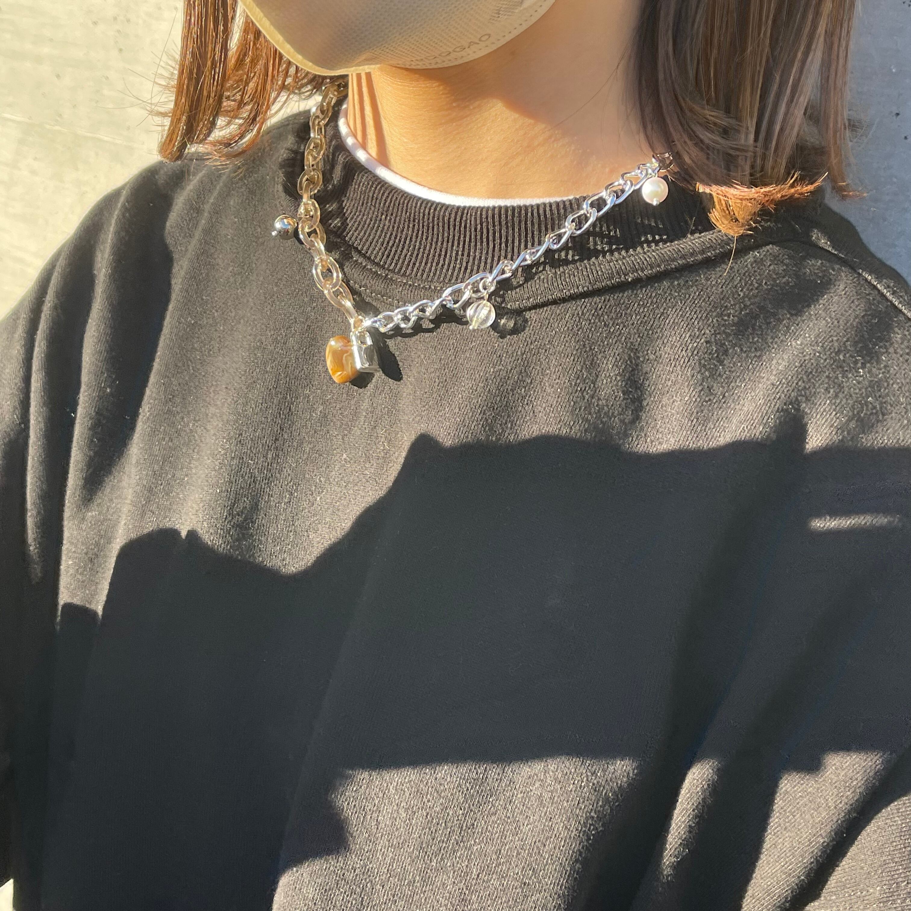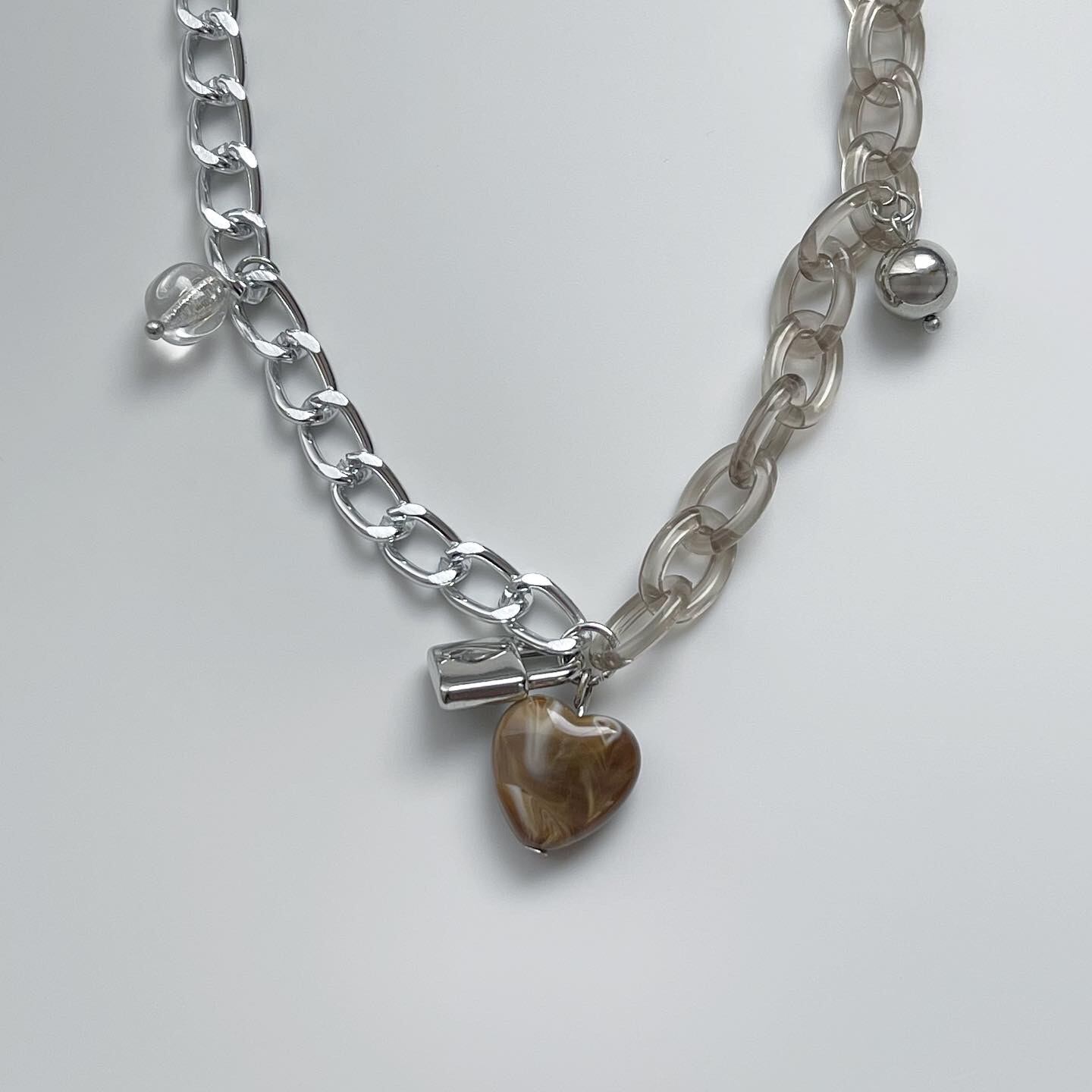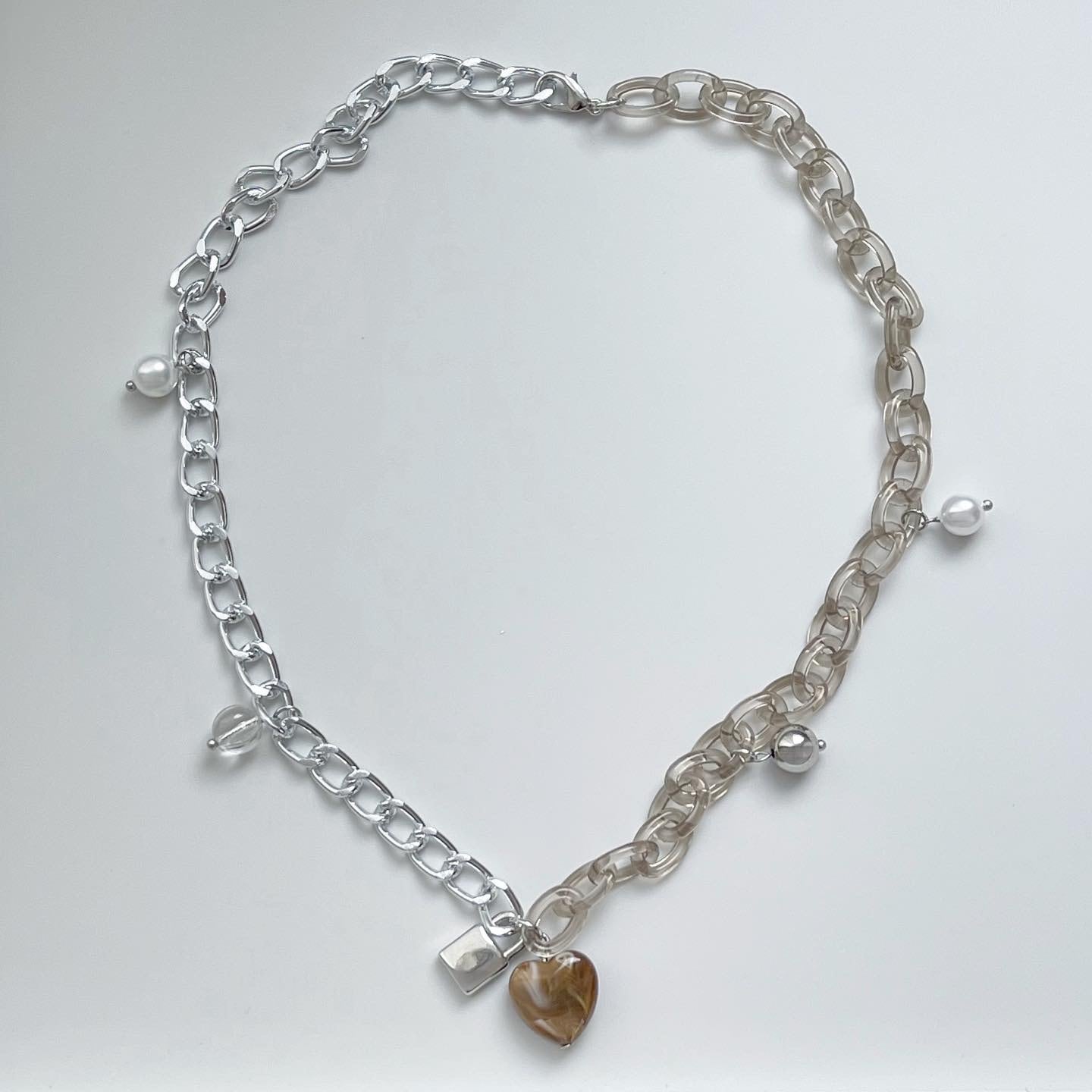 チャコールグレーとシルバーのチェーンを組み合わせたネックレス