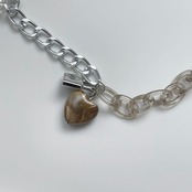 チェーン部分にハートのチャームやビーズ等を付け加え、