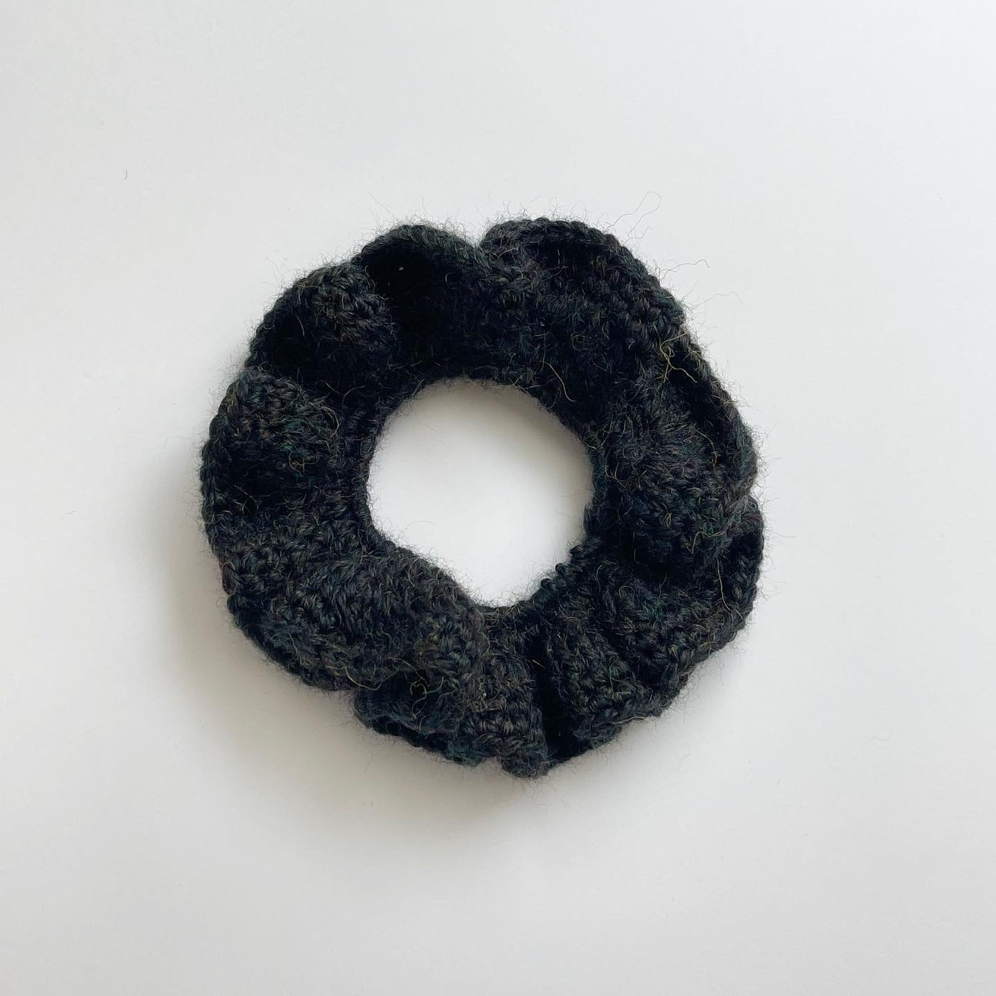 crochet chouchou / かぎ針編み シュシュ メランジ ブラック