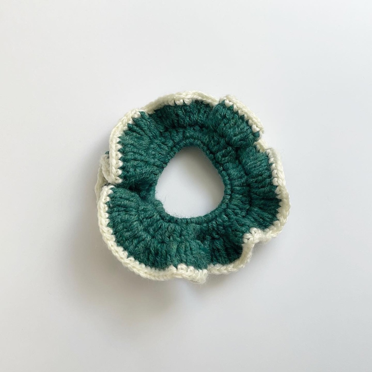 crochet chouchou / かぎ針編み シュシュ グリーン × ホワイト